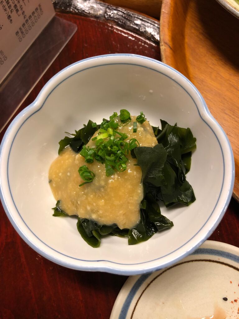 吉田類さん曰く、ポテサラで店の良し悪しがわかるというのでポテサラ、カキフライ、そして地元北海道ではお目にかかれないが、太田和彦さんなどがよく食べているので憧れている「ぬた(わかめ)」を注文。