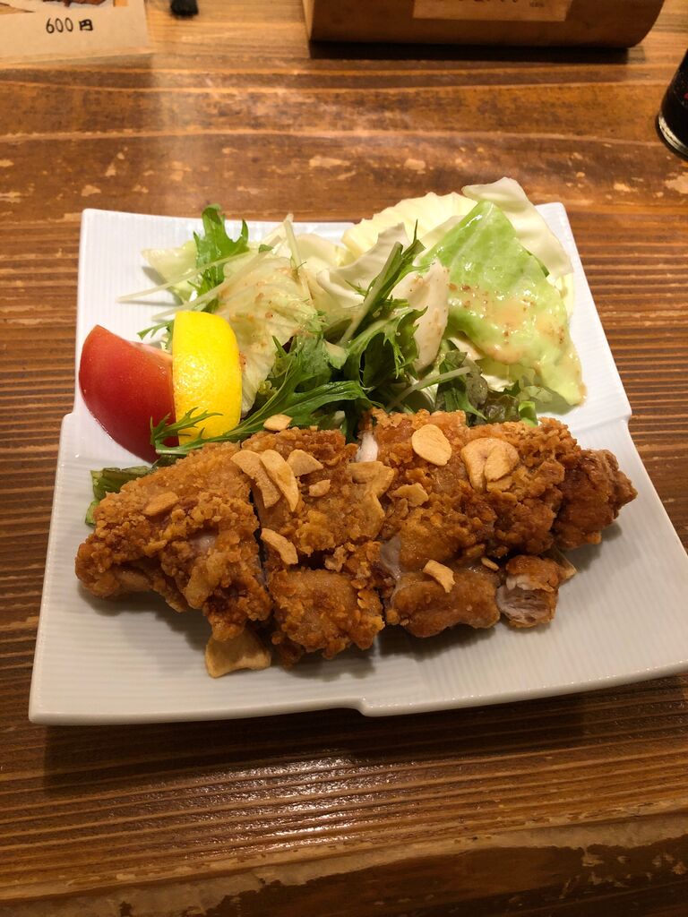 豪快な鶏もも肉、カリカリしていてニンニク、ショウガが効いている。