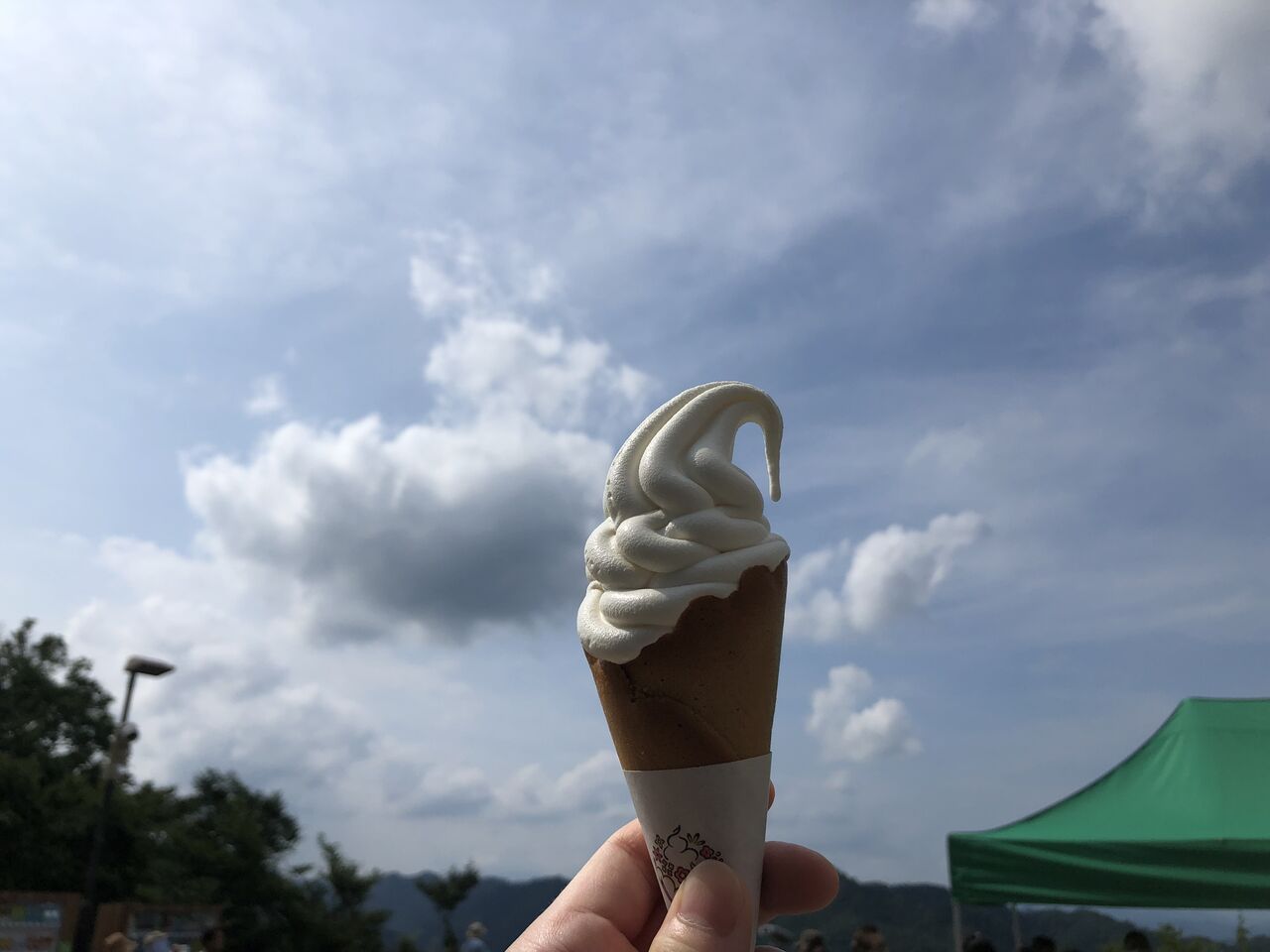 降りがてら、武田神社以来のソフトクリームを食べる。