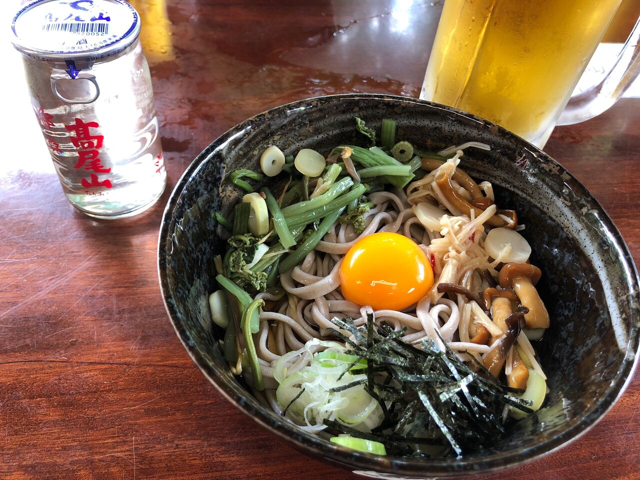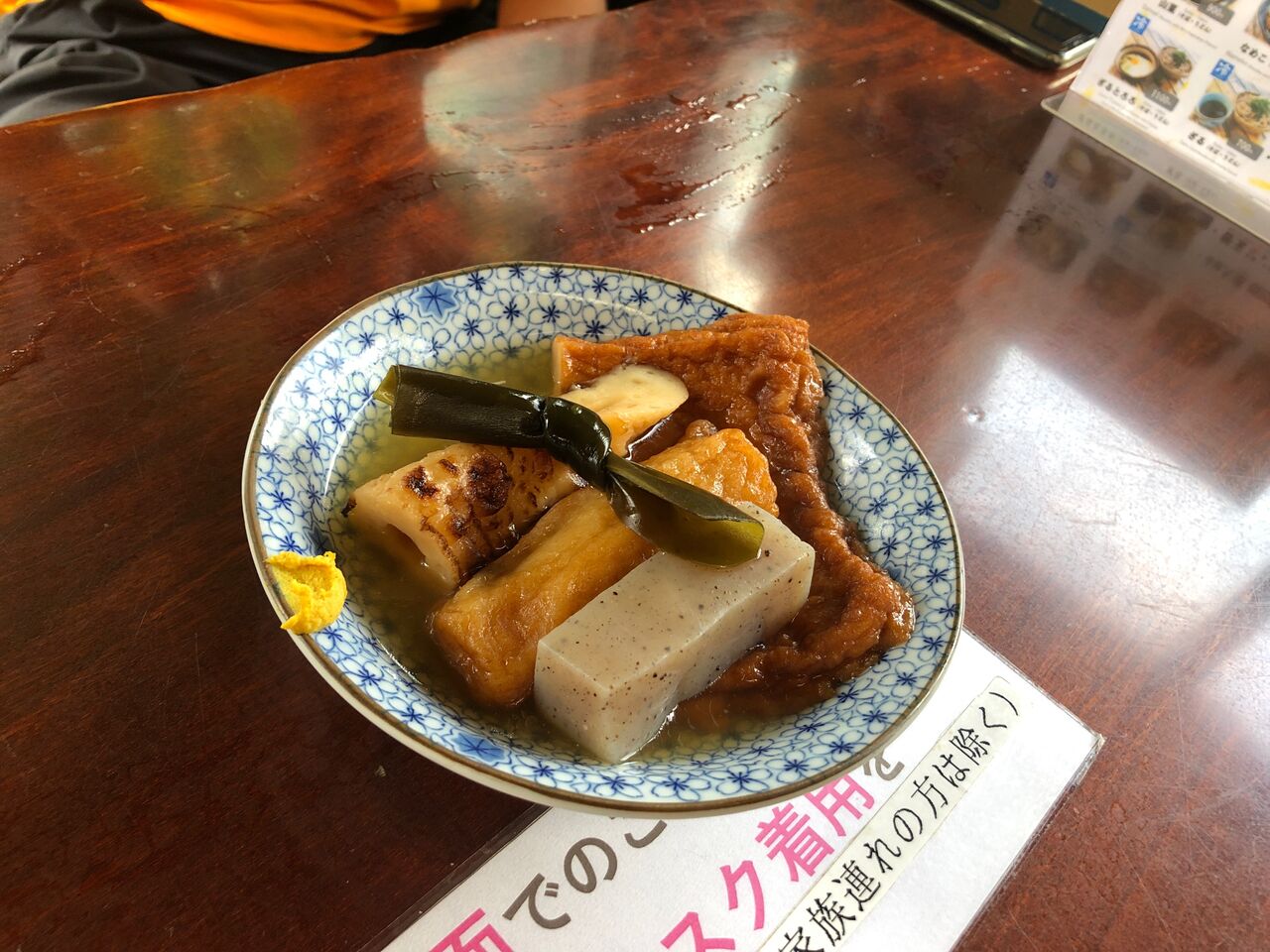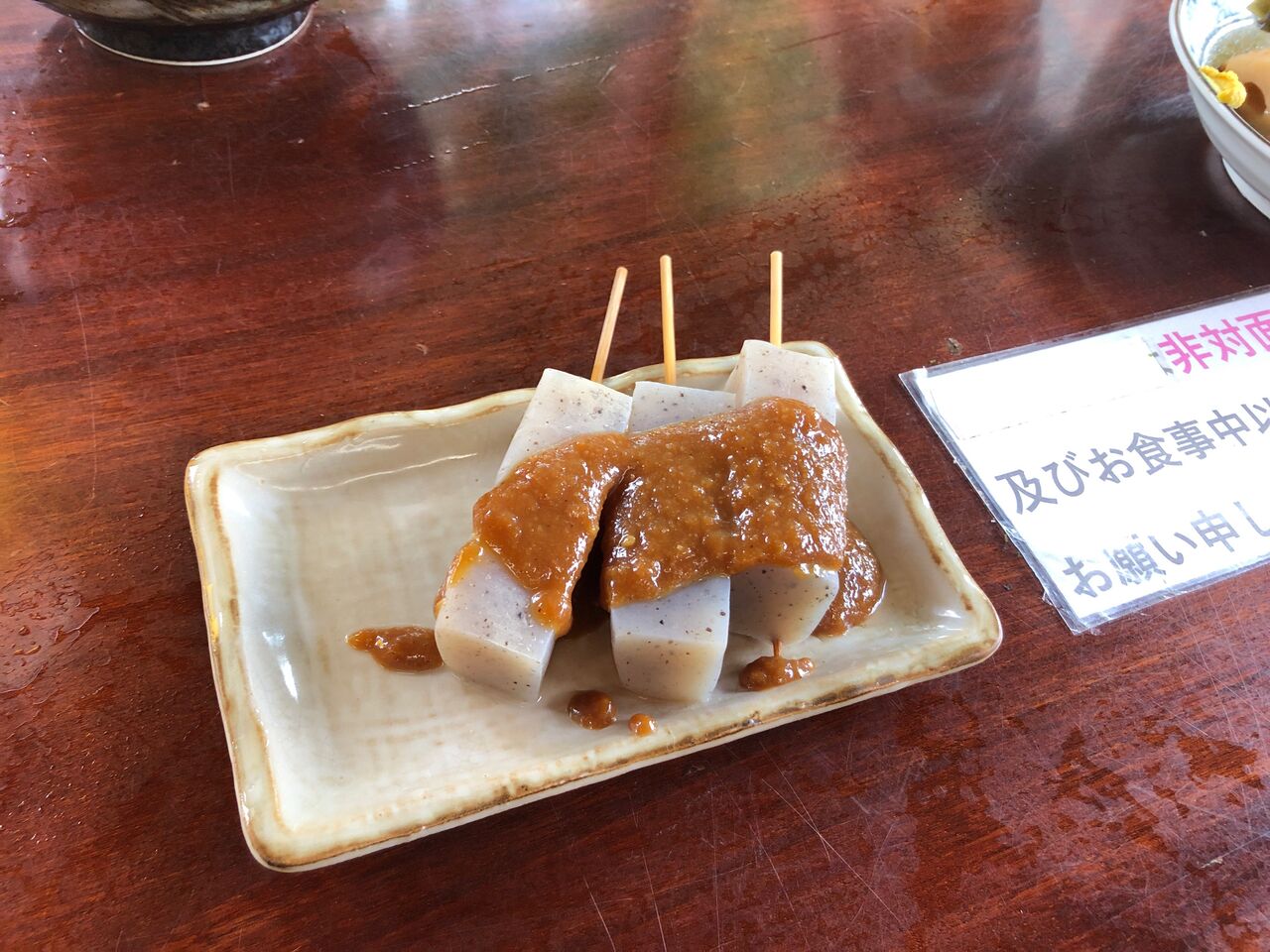 おでんとみそ田楽を、生ビールと高尾山限定のワンカップ熱燗で流す。