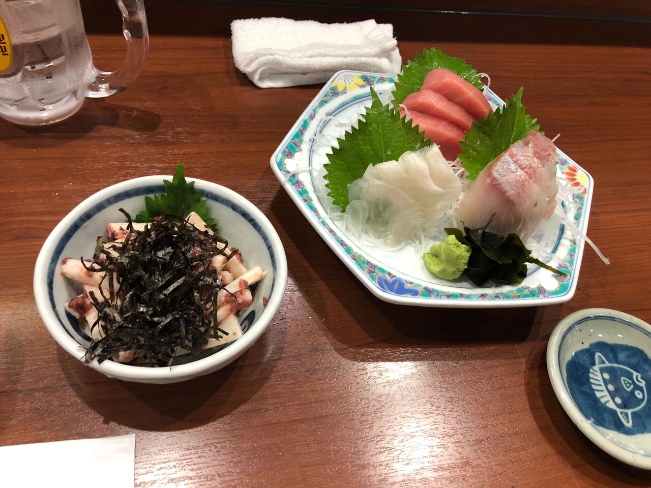 刺し盛りも新鮮で、長芋の梅和えは海苔とのマリアージュもあって、まるで今から飲み始めたかのような錯覚すら抱かせます。