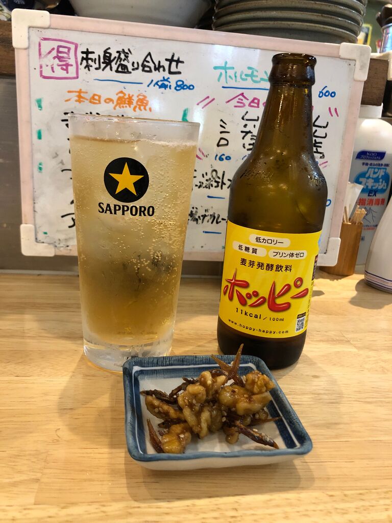 店員のお兄さんも元気良く優しげなので、気分良くホッピーセットで始めます。