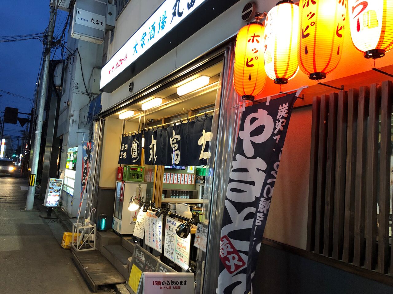 盛岡の繁華街の中にあるこちらの丸富士、見るからに大衆酒場風情なので入ります。