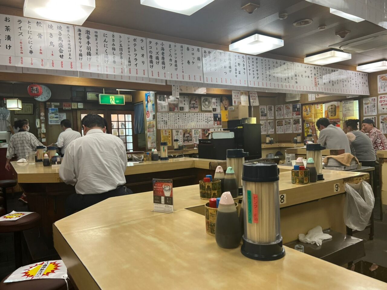 一階しか行ったことないのですが、大広間にコの字が三つくらい合体したようなカウンターで、一人飲みにも最適です。