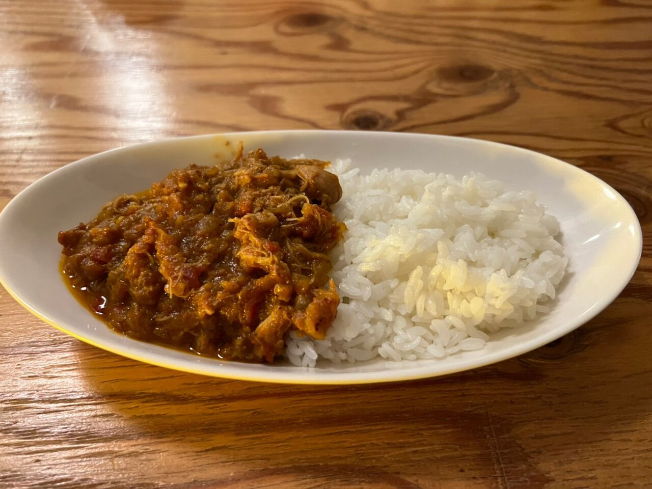 なんて言ってる間に無水スパイスチキンカレーが到着。