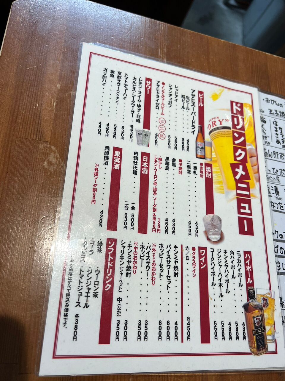 メニューを見ると、京都タワー(バクダン)なるチューハイも気になるところではあります。