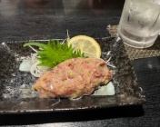 高砂通沿いの気腹志へ。 こちらは大衆居酒屋といった感じで、広く賑やか。 ニシンのなめろうで乾杯。 気腹志はとてもコスパの良い居酒屋で、芋焼酎なども安い値段で結構な量。のぶちゃんのホッピーには及ばないが、気を抜くと泥酔しそうなほどで嬉しい…