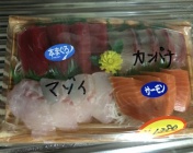 開拓組の隊長から聞いたところでは、自由市場から独立した高野鮮魚店がオススメということで行ってみました。 こちら自由市場から電車通りを挟んだ向かいのブロックにあります。 鮪は一冊三千円するということで高いのでやめにして、大好きなイワシ刺しはこの量で…