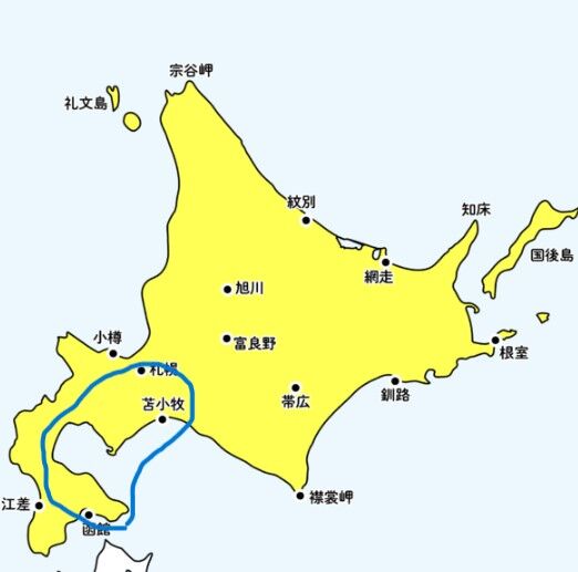 たまに勘違いしている人がいるのですが、この北海道地図の青線で囲った部分が、函館のこれと同じだと思っているんです。