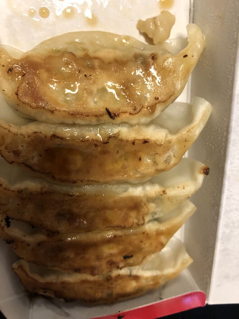 通過前にテイクアウトで購入した551HORAIの焼き餃子と中華マンを缶ビールで流す。