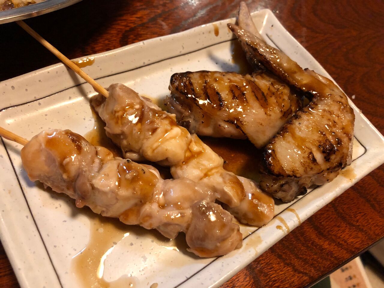 タレが絶妙なので、焼き鳥は鳥串と手羽先。