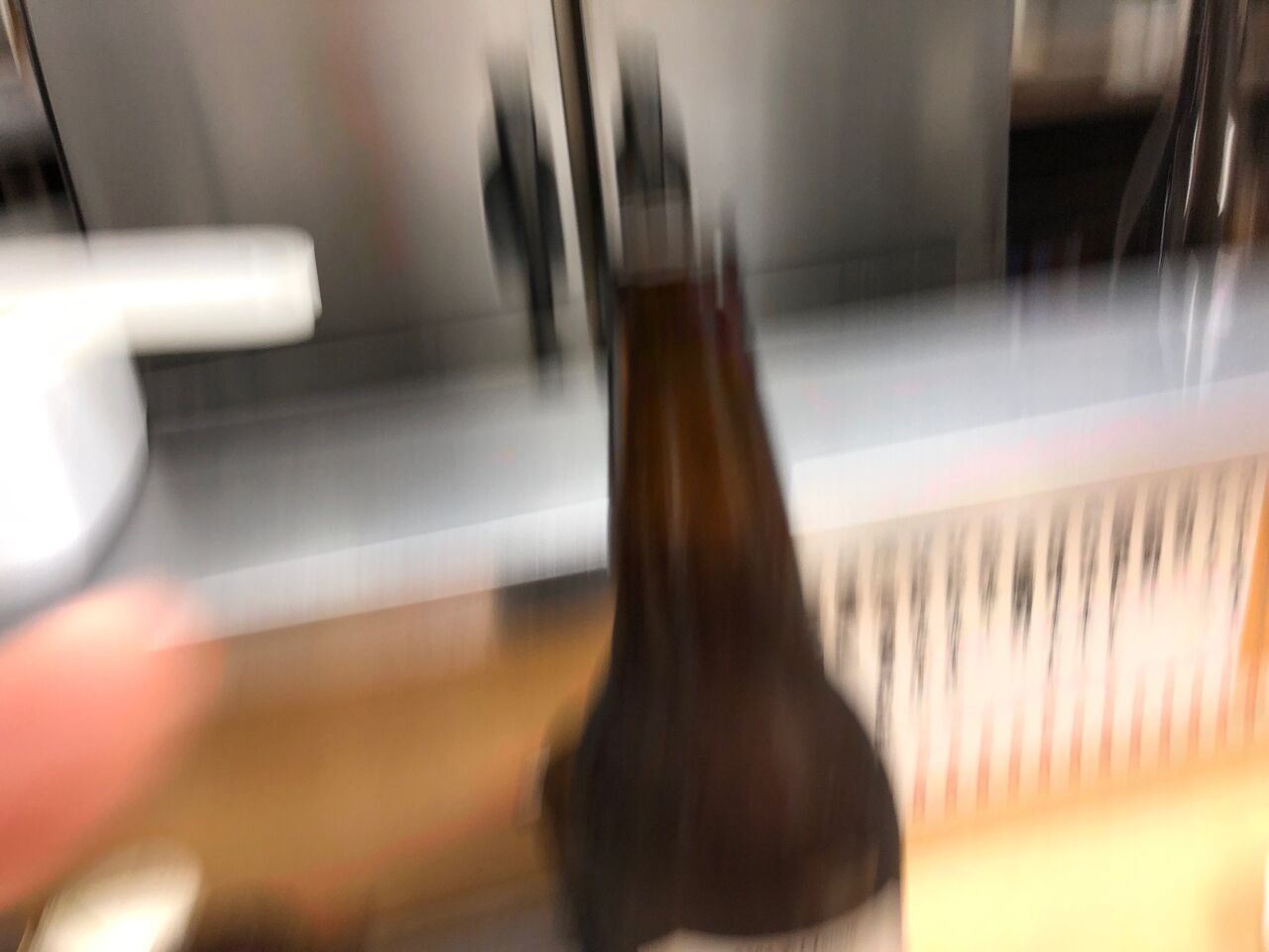奥まで続く長いカウンターに腰を下ろして、瓶ビール。