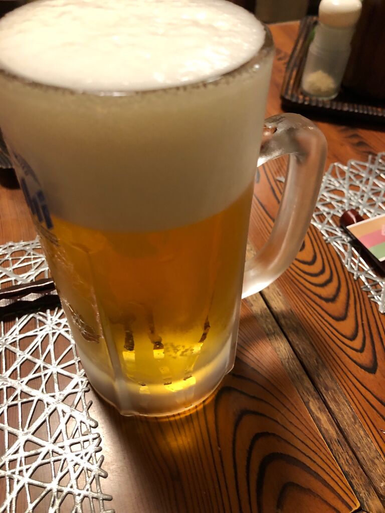生ビールと赤ワインで乾杯。