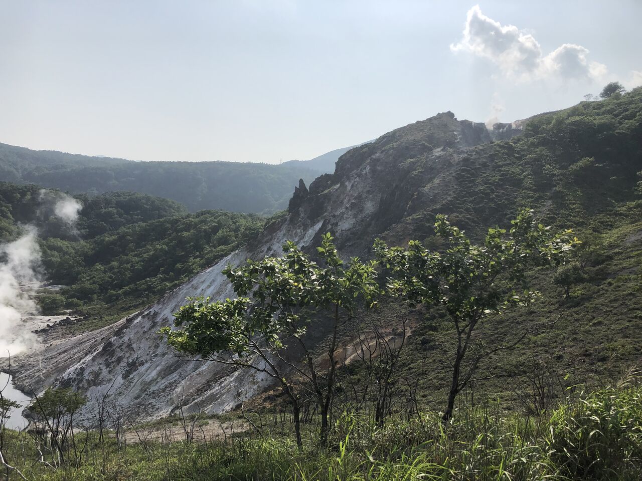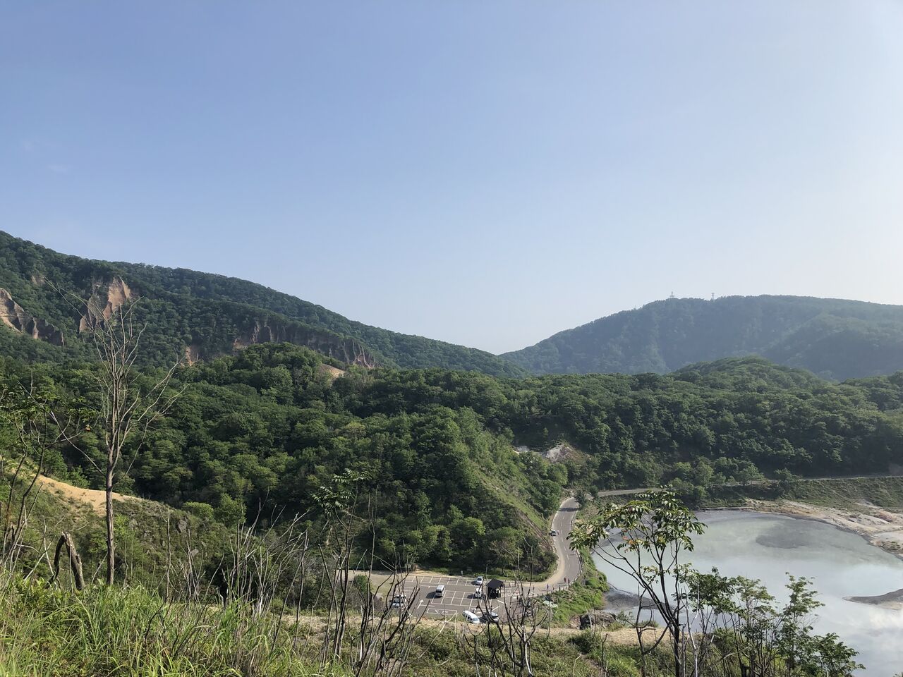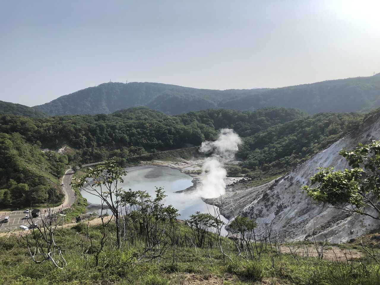 倶多楽湖の狭い道を抜けると、そこには地獄谷が見えました。