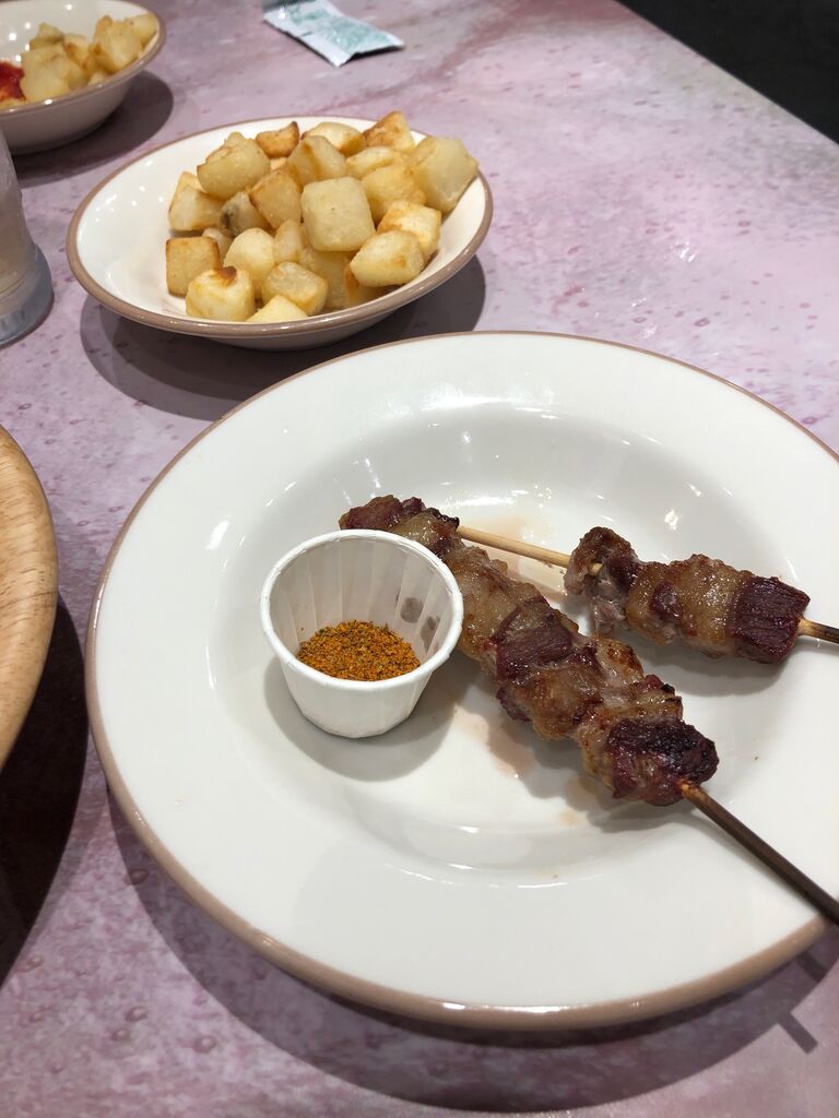 芋とラム串。