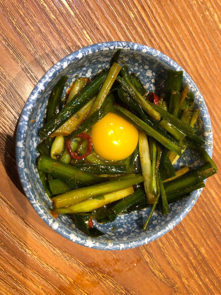 お通しは四つの中から選べるということでして、我々は2人とも辛ニラユッケにしました。