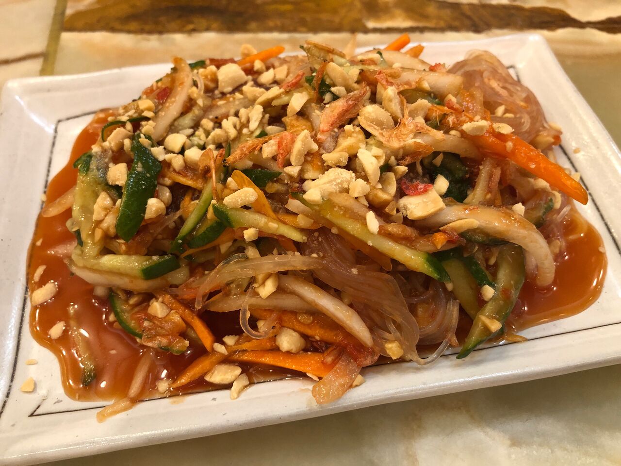 ピリ辛の春雨サラダということでして、お酒のおつまみに最高です。