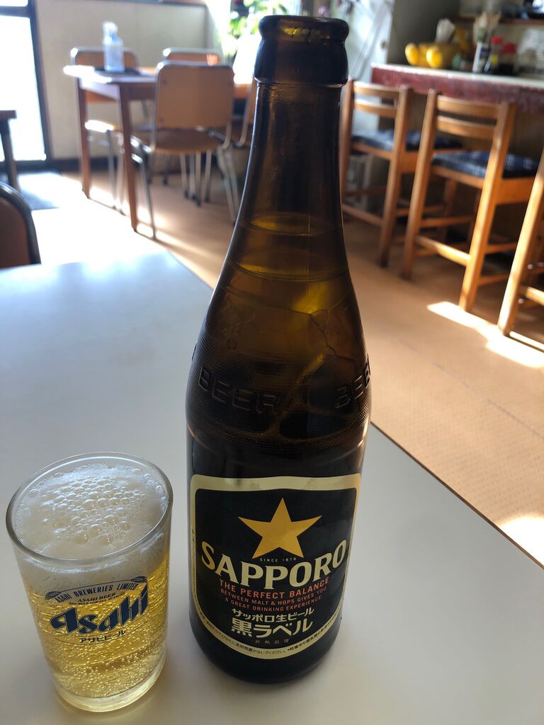やはり函館で昼から呑む者は少ない上に、いきなり瓶ビールと熱燗2合にはドン引きだろう。