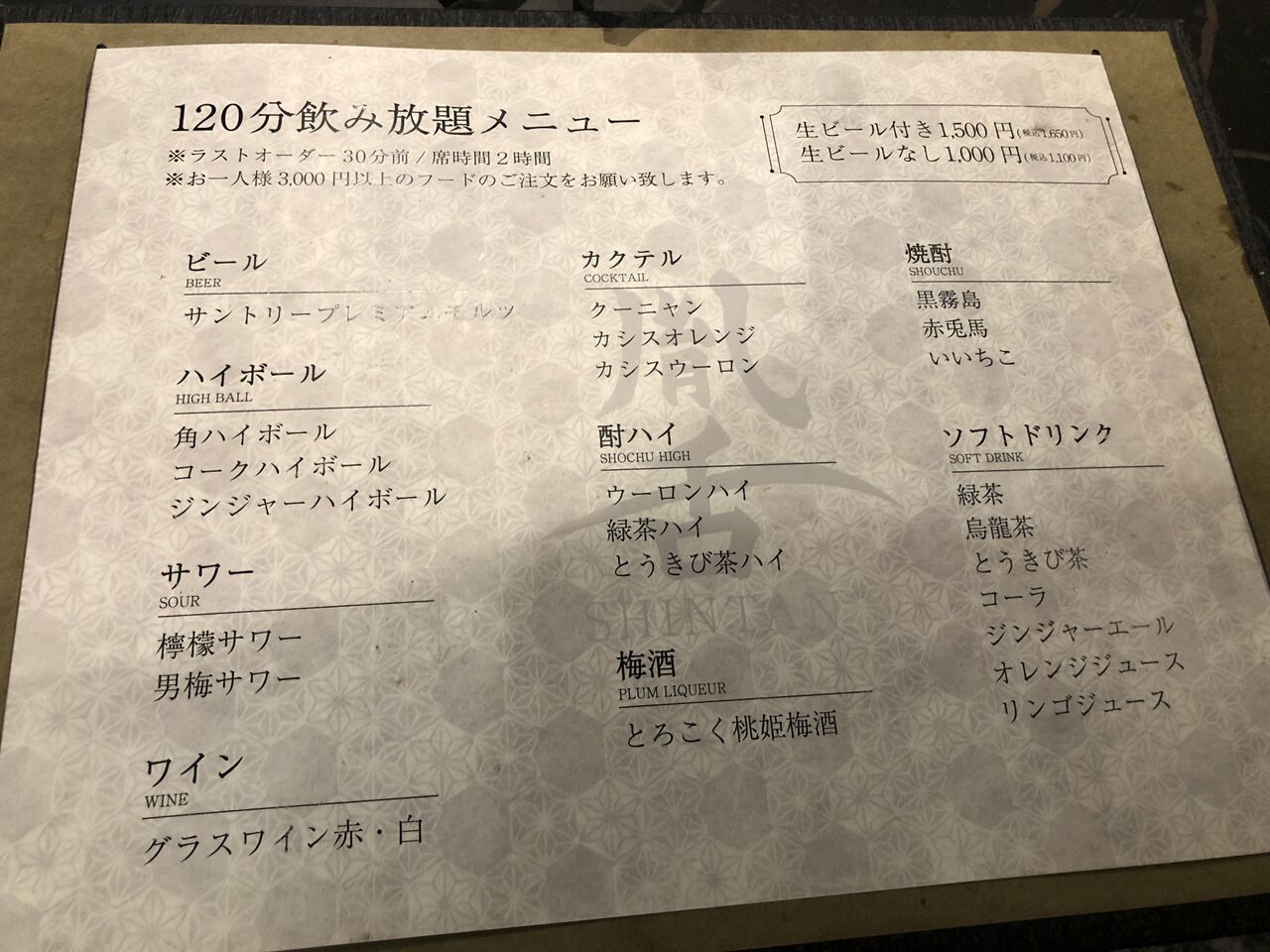 焼き肉は高くつくと思うので飲み放題はまずプレミアムモルツ生。