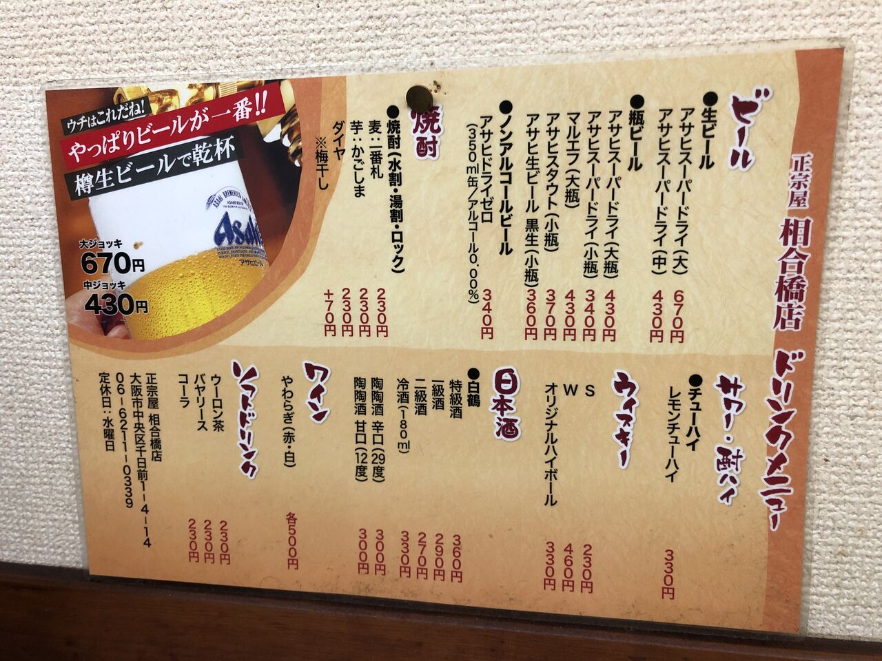 正宗屋も赤垣屋同様、大阪に数店舗ある大衆酒場の名店だ。