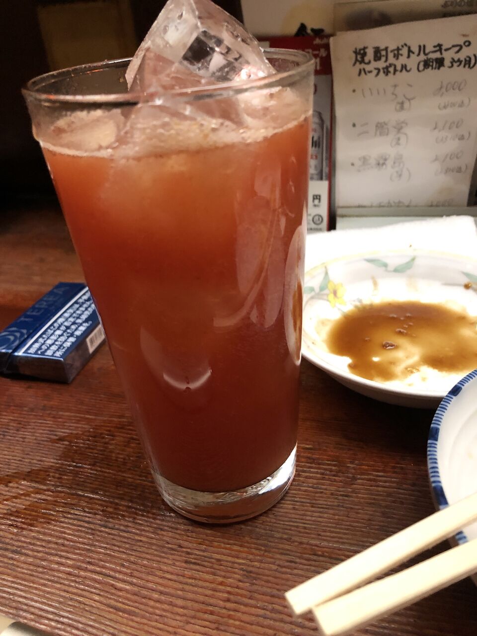 テンションが上がりまくっており、一杯目から芋焼酎は仲右衛門のロック。