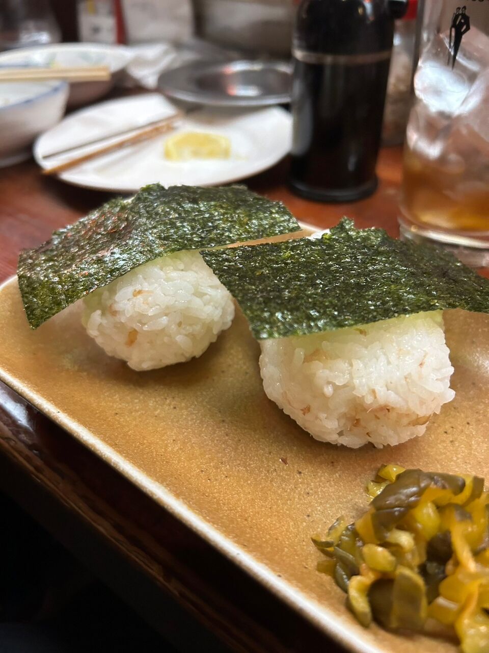 締めは久しぶり、待望の海苔おにぎり。