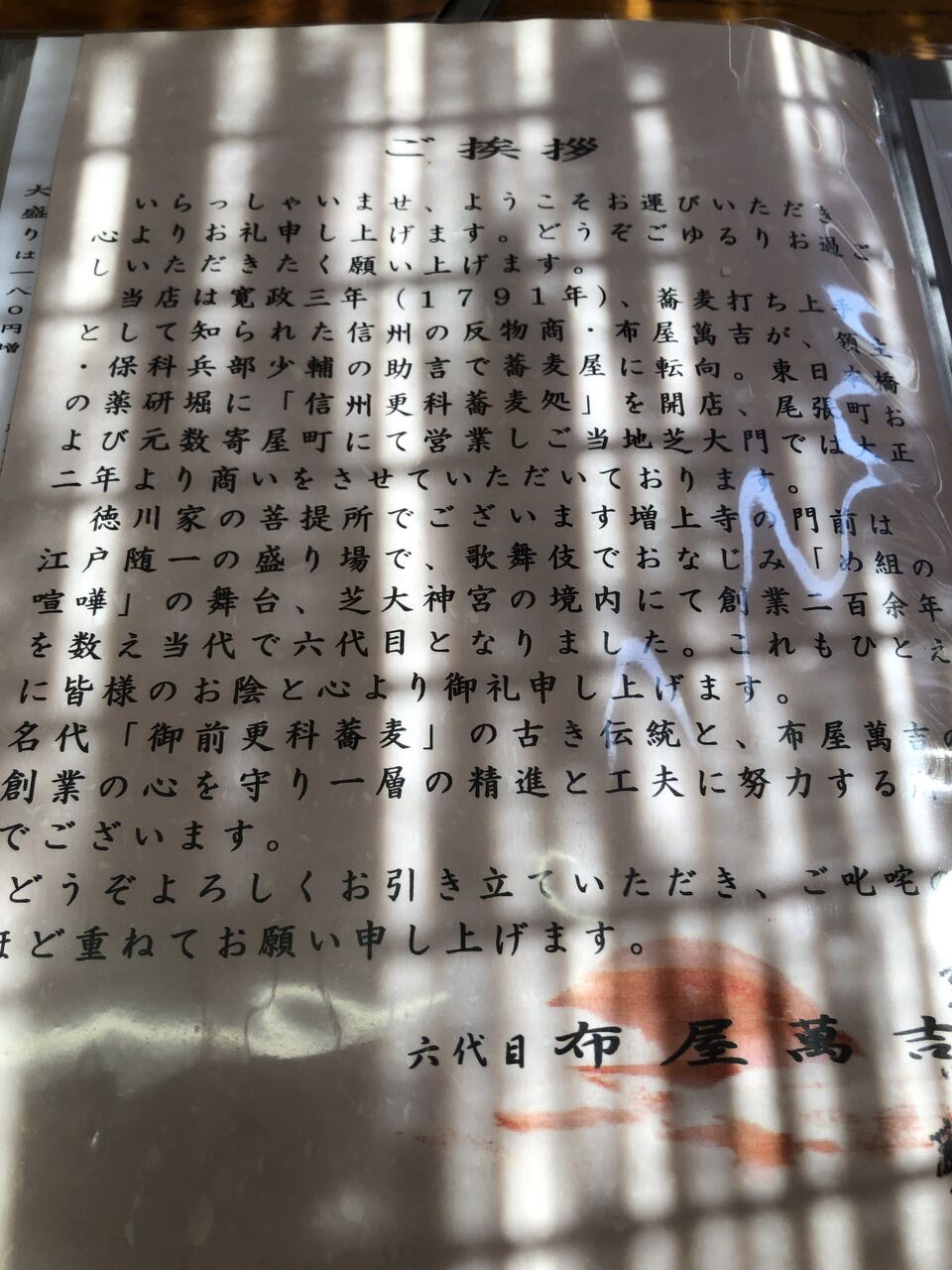 浜松町駅から秋田屋、大門駅を抜けて芝増上寺に向かう道すがらにある更科布屋へ。