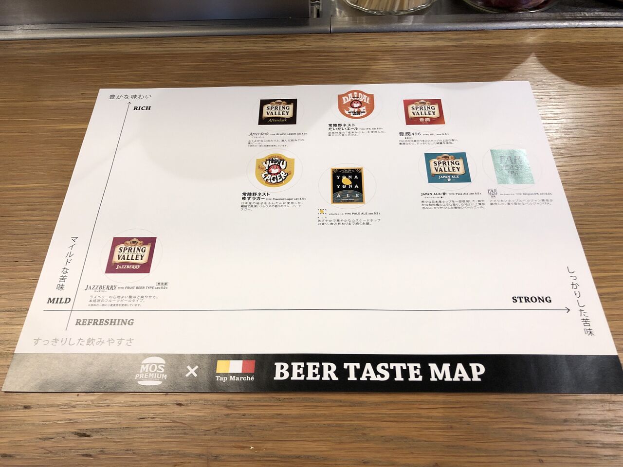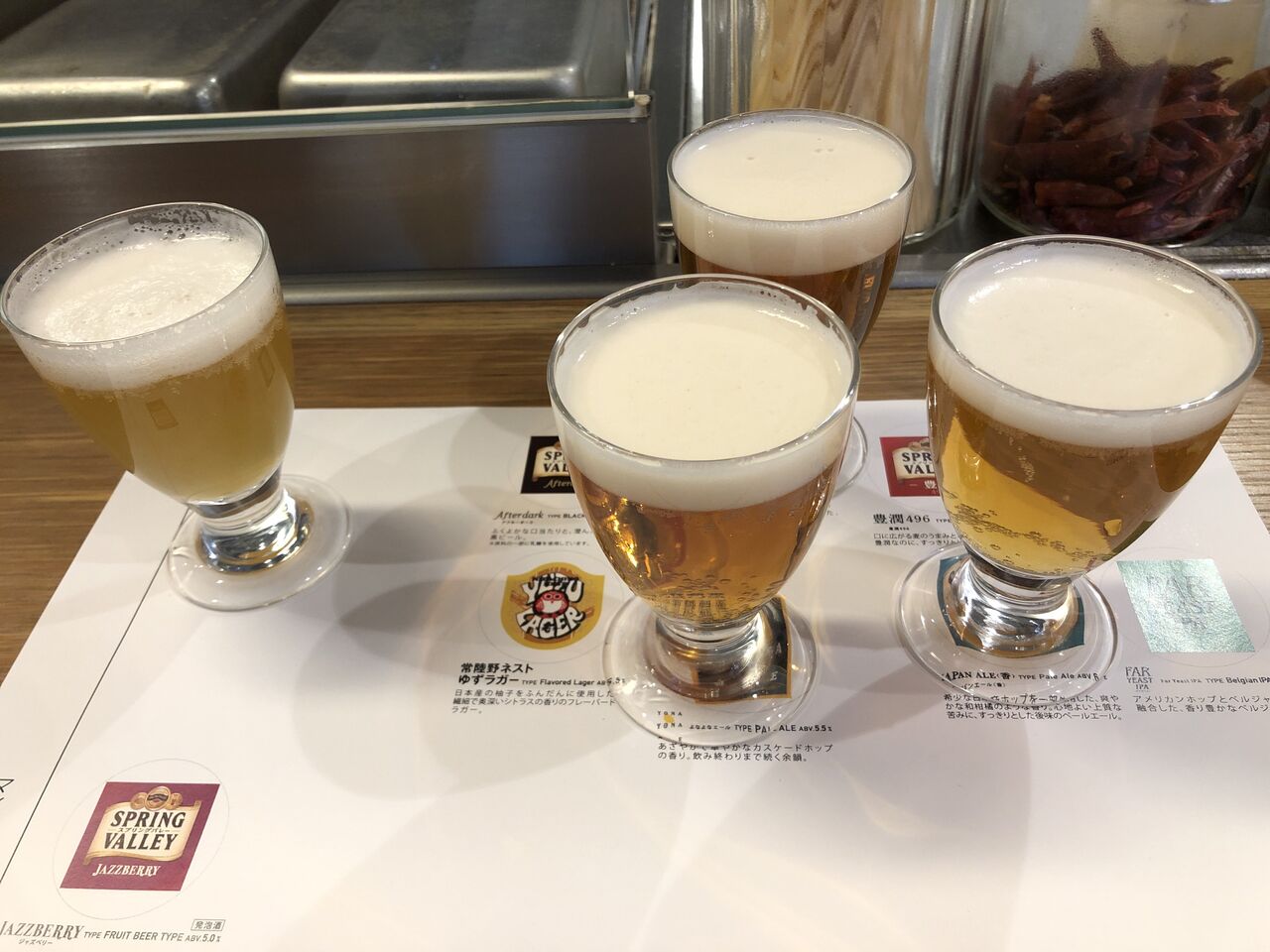 メローイエロー、よなよなエール、だいだいエール、スプリングバレーの4種類。