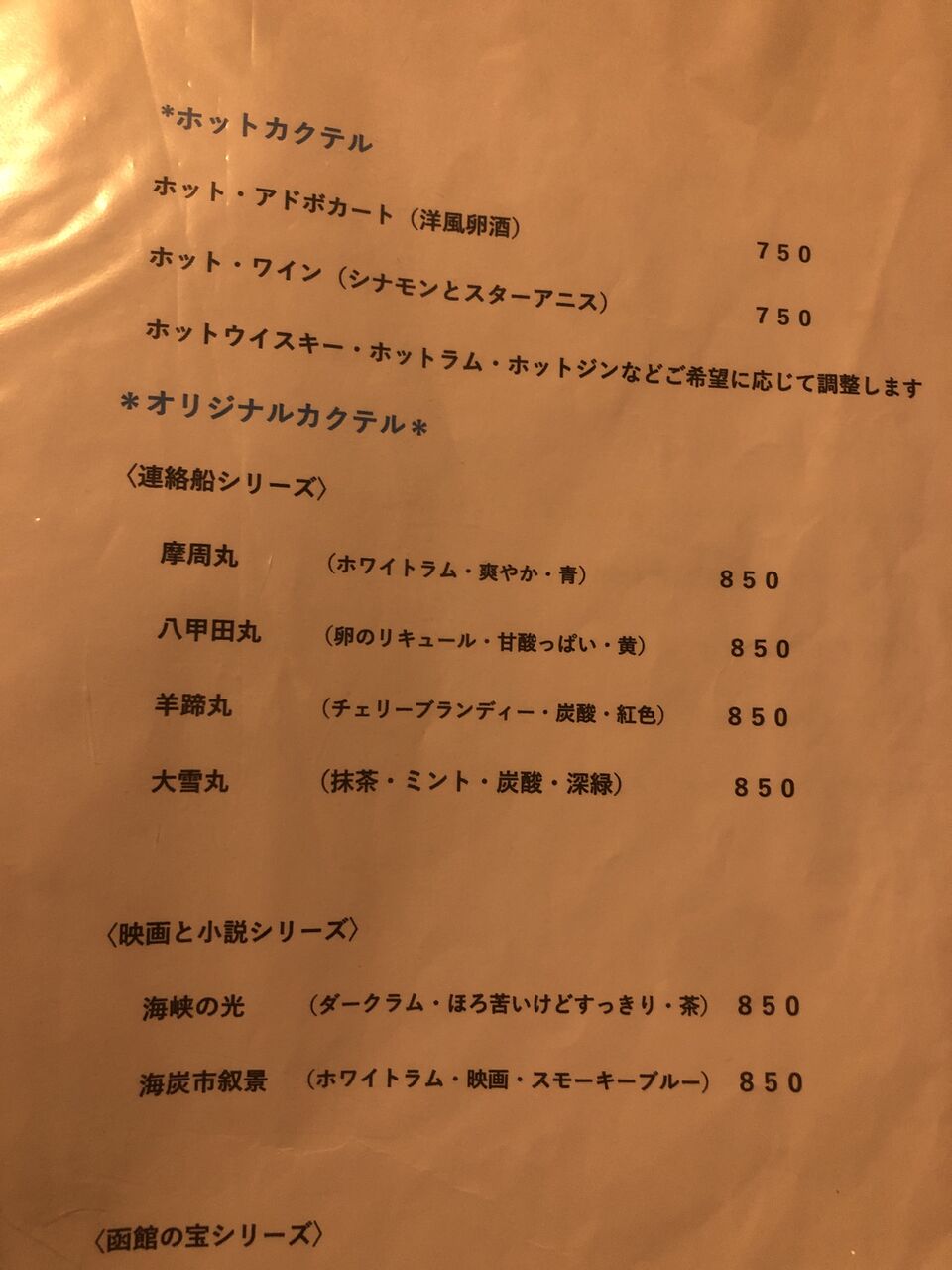 横須賀の相方は、オリジナルカクテルの連絡船シリーズから大雪丸。