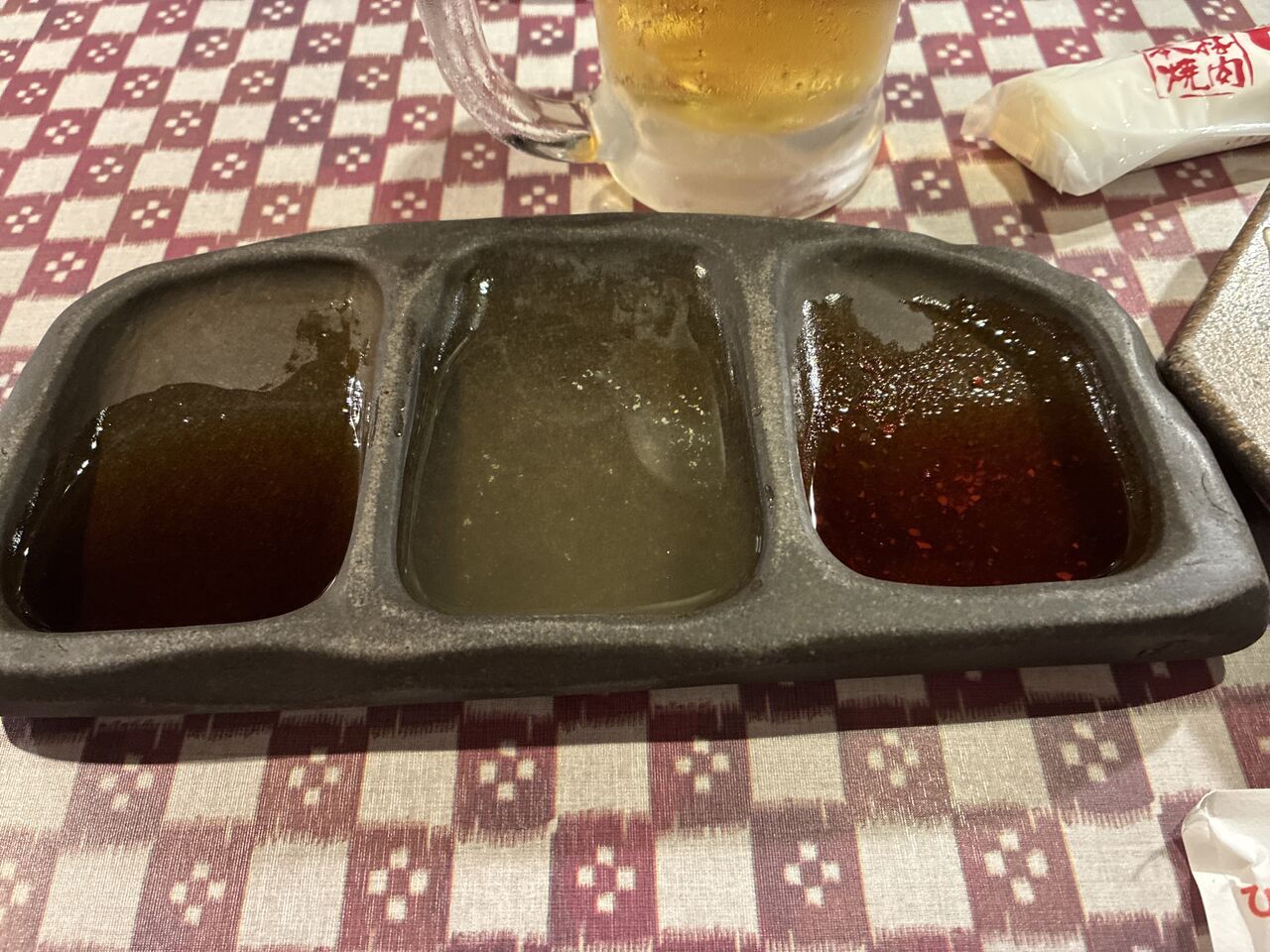 牛ホルモン3点盛りは、ホルモン、上ミノ、ギアラ。