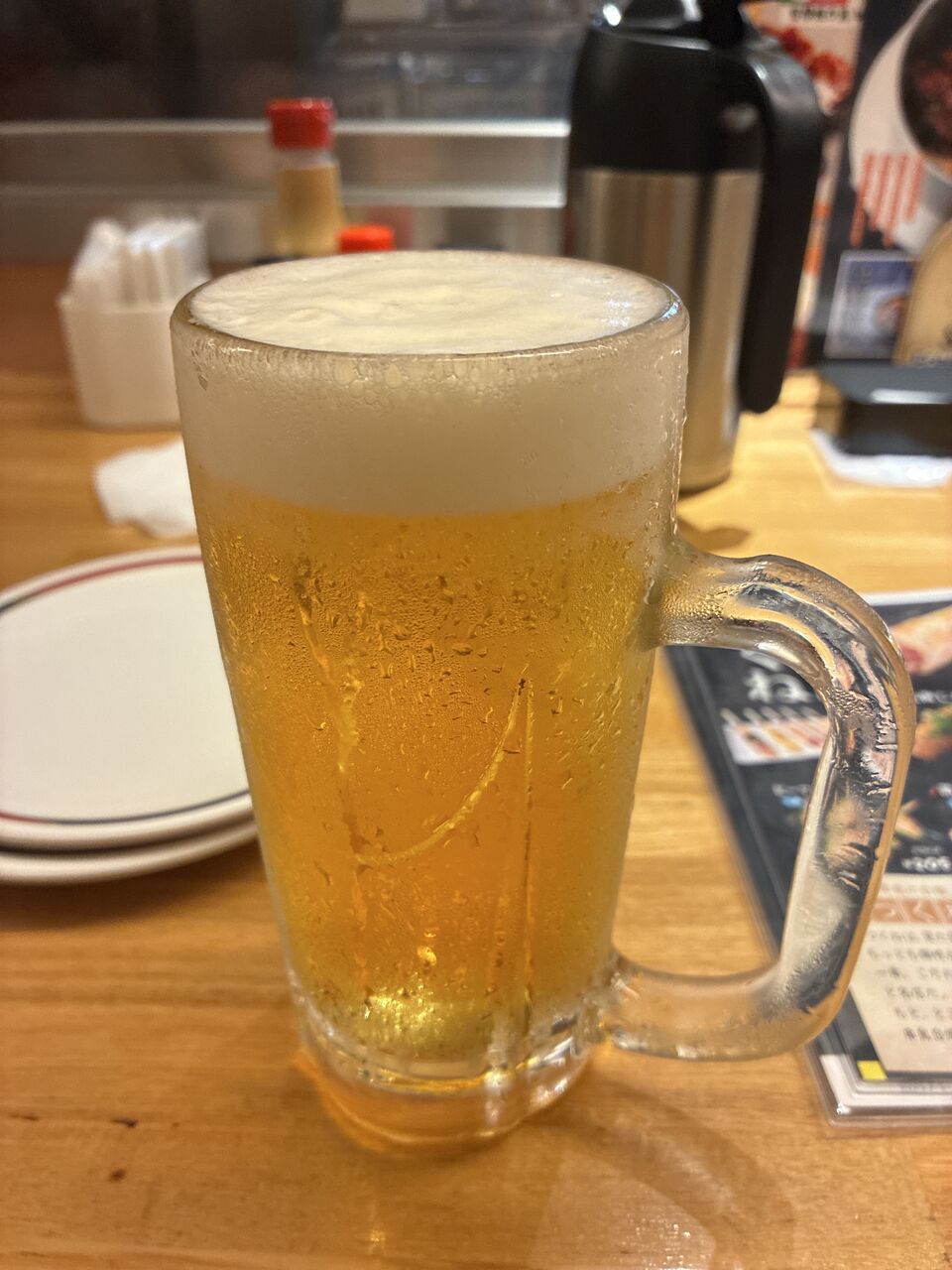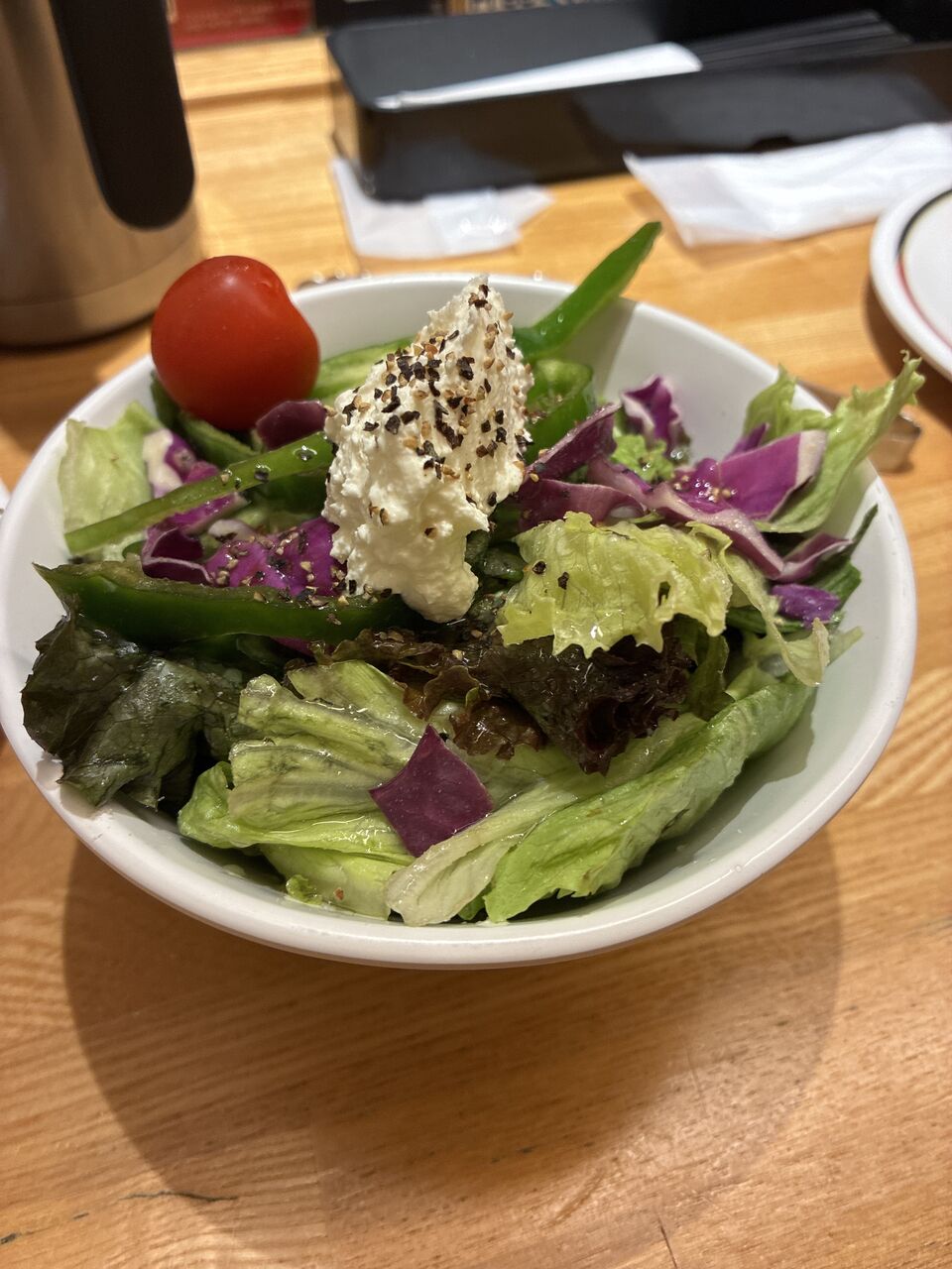 生ビールから始まり、まずはグロークサラダハーフを頼んだ。