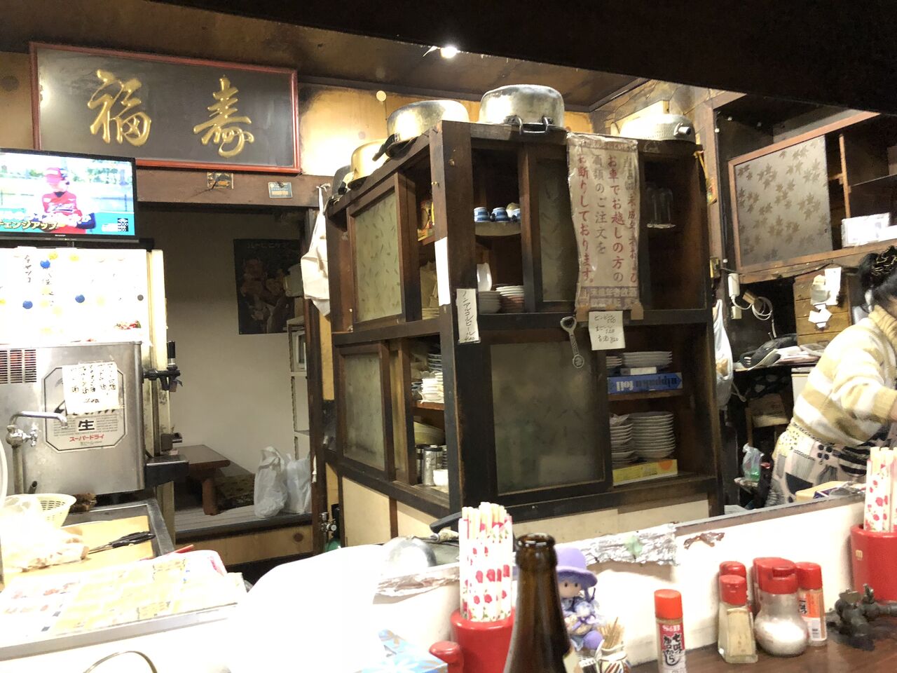 女将さんのワンオペで、常連さんが手伝っているアットホームな感じでした。
