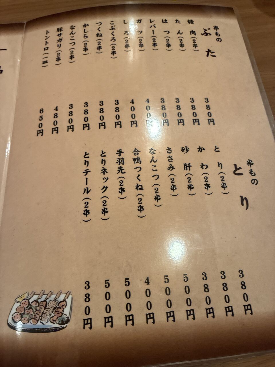 品書きを見ると焼き鳥は2串からになっているが、3串でも良いという。