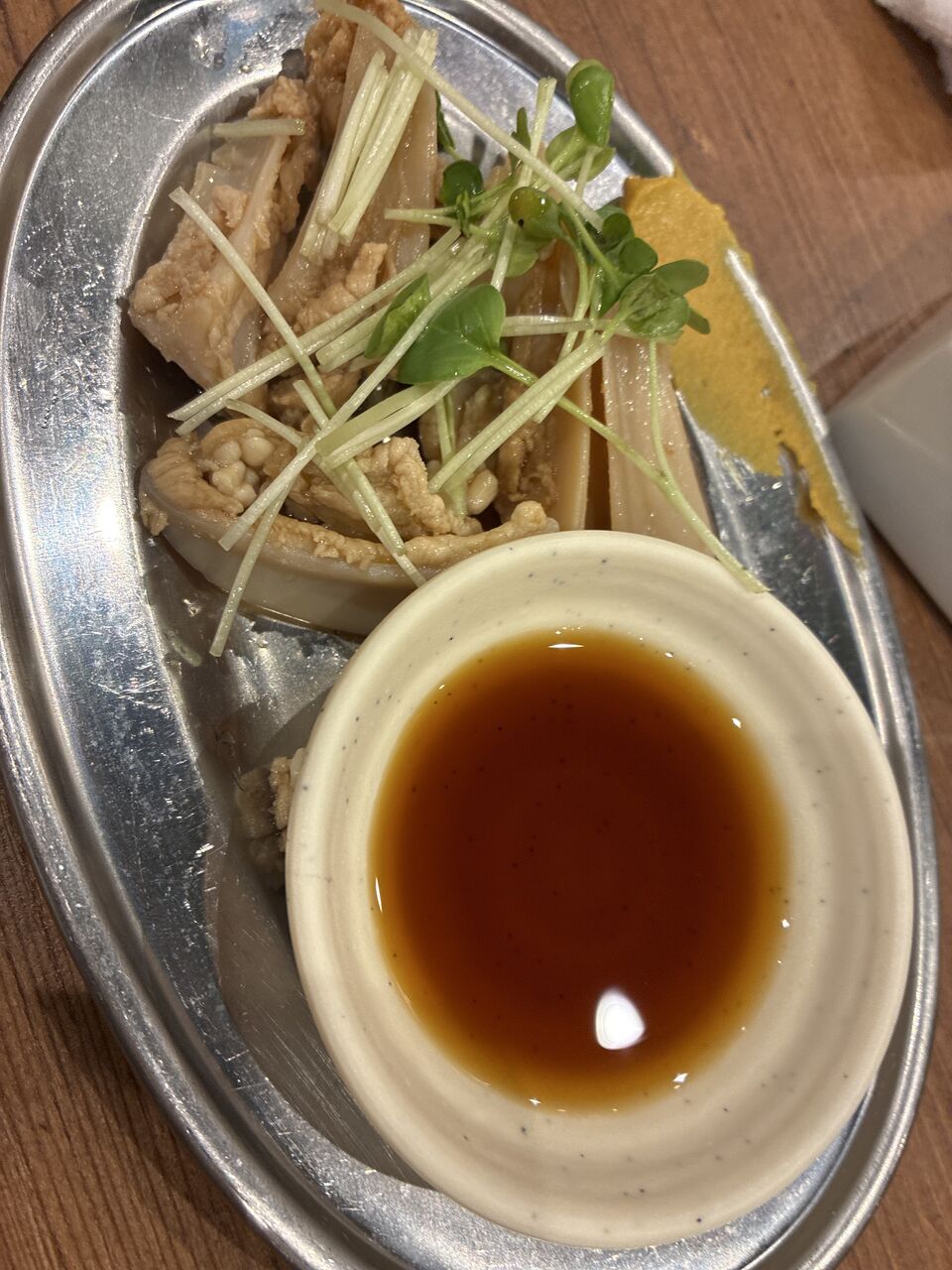閉店間際のため、伝串などは食べられず、梅水晶とガツ刺しで締めます。