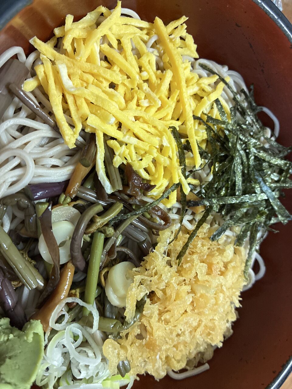 今回拙者は初めて、山菜蕎麦にしました。