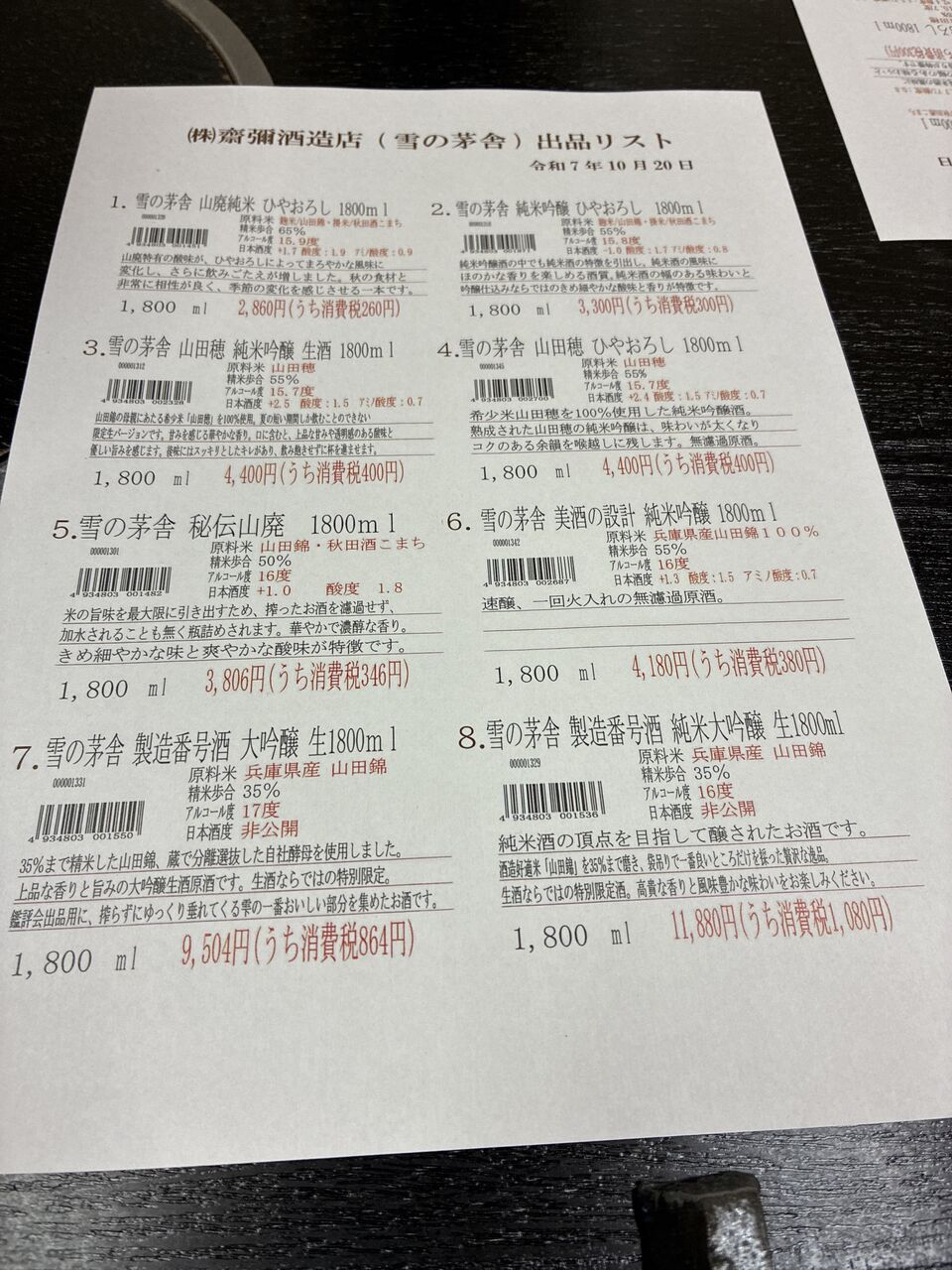 越前屋さん主催で、秋田の名酒「雪の茅舎」を楽しむ特別な夜を八千円で過ごしてきました。