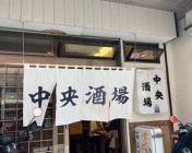 横須賀中央三大酒場の一つ、中央酒場はなんと10時開店。 10時から堂々と飲める横須賀クオリティー。 目の前が、奥まで連なる長いカウンター、ちょいと右側がテーブル席でして、相方とともにテーブル席の一番奥に着座。 私はもちろん三冷ホッピー、相方は…